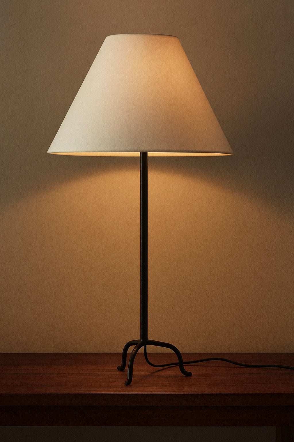 Cozy up your space with our Angeline Table Lamp featuring a stylish sturdy tripod iron base. This piece casts a warm, inviting glow, making it perfect for cozy reading nooks, bedside tables, or living room accent lighting. Its antique finish and iron detailing effortlessly enhance any rustic, industrial, and vintage-inspired feel.
